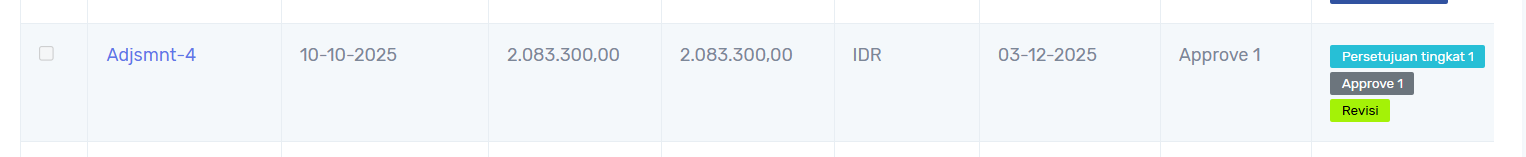 pengajuan revisi akan muncul ke approval yg memberi feedback untuk meminta persetujuan kembali :