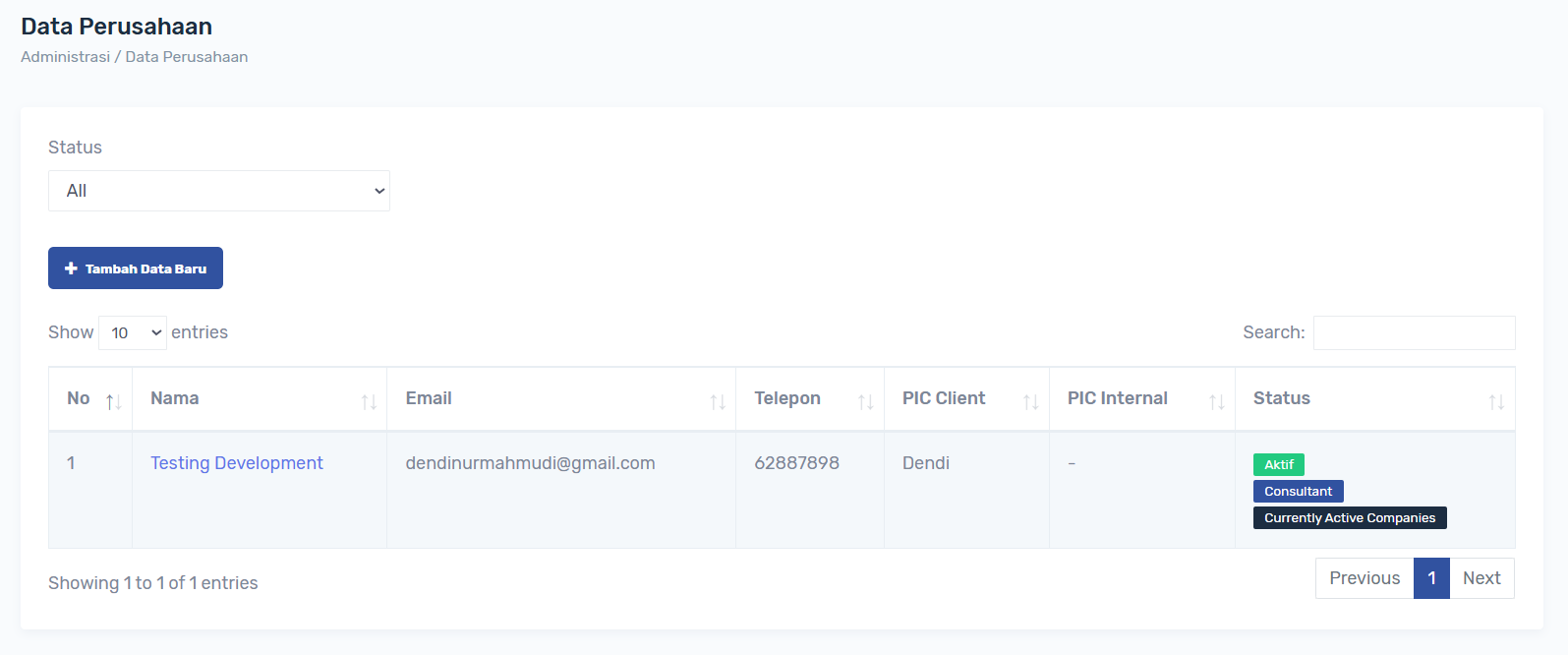 Untuk menambah klik button + Tambah Data Baru, untuk Edit klik Nama perusahaan yg ada di list data.