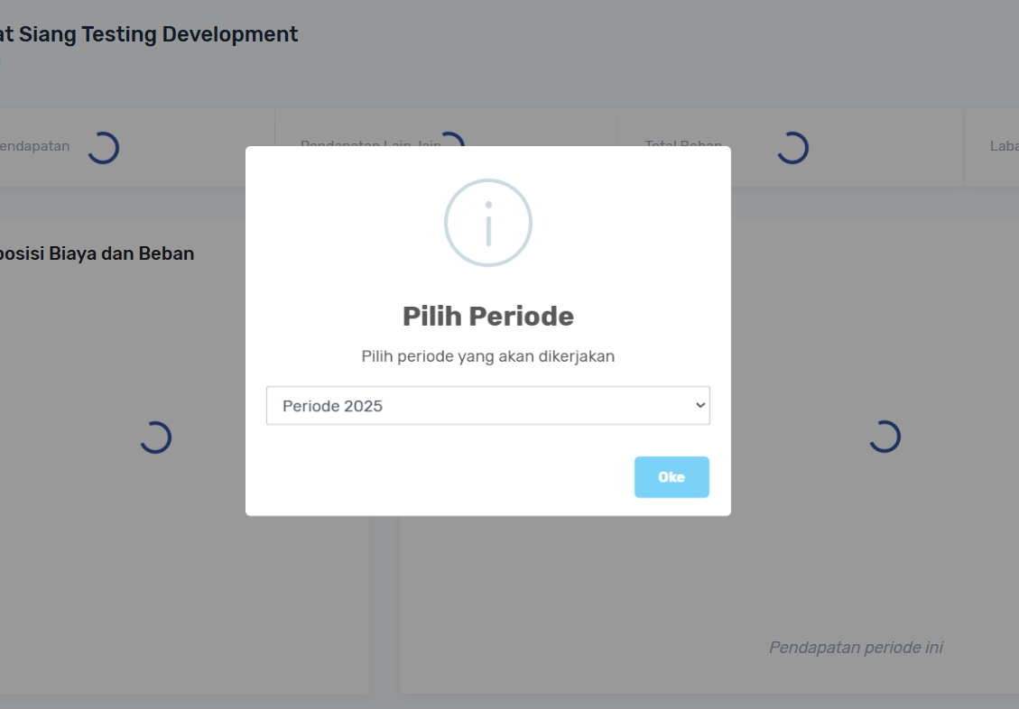 Karena periode telah dibuat, ketika user berhasil Login akan muncul pilihan Periode mana yang akan dikerjakan, terdapat pilihan periode dari hasil penambahan di menu Open Periode :